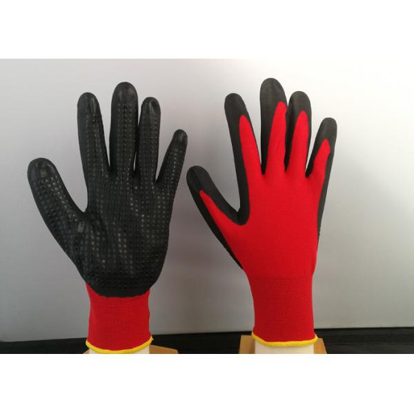 Name: Slip Proof Breathable Nitrile Dots Style Black Micro Foam Nitrile Coated Red Nylon Safety Working Gloves