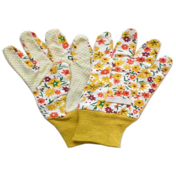 Flowered Cotton Canvas Safety Work Gloves With Mini Dots Palm, Cute-Pattern,Wing Thumb,Knit Wrist, Beautiful Flowered cotton gloves With Mini Dots Palm . Safety Glove